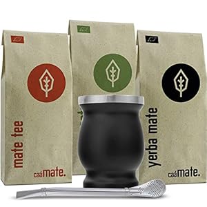 Mate Tee Set Bio ● 3 Matesorten + doppelwandiger Edelstahl Matebecher + Bombilla + Zubereitungsanleitung (schwarz)