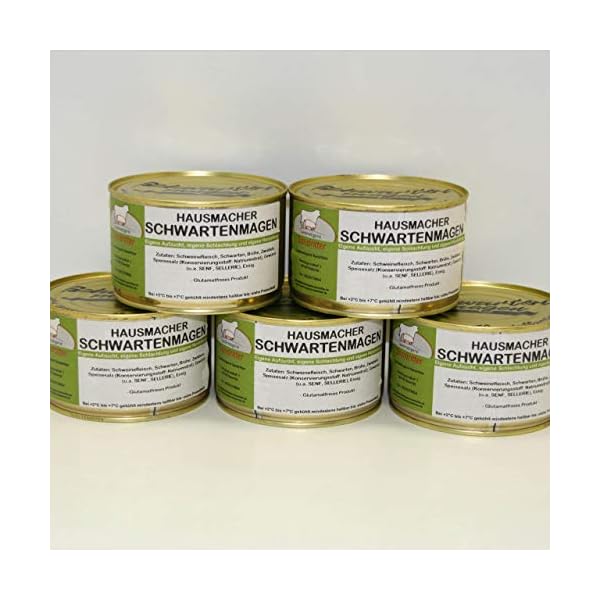 Hausmacher Schwartenmagen, auch Presskopf, Presssack oder Sausack genannt, ist eine schnittfeste Kochwurst aus Schweinekopffleisch und Schweineschwarten, sowie Gewürzen. Hausmacher Schwartenmagen gibt es in Weiß und in Rot. Bei der Herstellung von Rotem Schwartenmagen wird der Masse vor dem Abfüllen Schweineblut zugegeben, so dass die fertige Wurst eine rote bzw. rot-braune Farbe erhält. Unser Hausmacher Schwartenmagen wird nach traditionellem Rezept noch am Tag der Schlachtung aus schlachtwarmem Schweinekopffleisch und Schweineschwarten hergestellt. Dadurch entwickelt unser Hausmacher Schwartenmagen sein typisches Aroma und seinen charakteristischen, vollmundigen Geschmack. Gerne wird der Hausmacher Schwartenmagen als dickere Vesperscheibe geschnitten und kalt mit frischem Brot, sowie Senf als deftige Brotzeit gegessen. Er kann aber auch als Aufschnitt auf das Brot gelegt werden oder mit Essig-Öl-Dressing und Gewürzgurken angemacht als Schwartenmagensalat serviert werden.