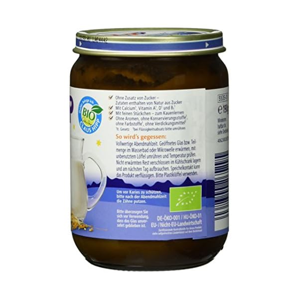 So wird’s gegessen: Vollwertige Abendmahlzeit. Geöffnetes Glas bzw. Teilmenge im Wasserbad oder Mikrowelle erwärmen, mit unbenutztem Löffel umrühren und Temperatur prüfen. Nicht erwärmten Rest verschlossen im Kühlschrank lagern und am nächsten Tag aufbrauchen. Speichelkontakt kann das Produkt verflüssigen. Bitte Plastiklöffel verwenden.