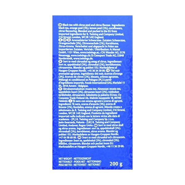 Zutaten: Schwarzer Tee, Zitronenschalen , Orangenschalen, Aroma.